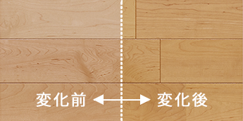 - ●天然銘木は年月を経る中で太陽光や照明などの光や熱の影響により、濃度が増したり、薄くなったり、様々に変化します。写真は開発研究所での実験サンプルの例です。