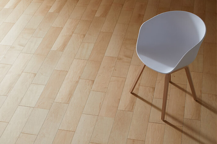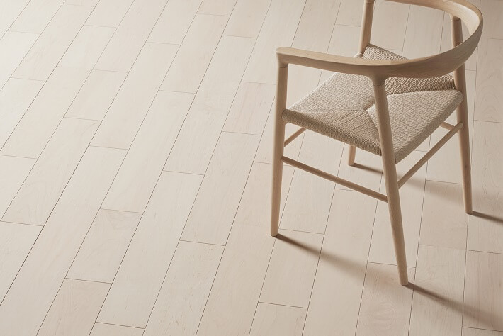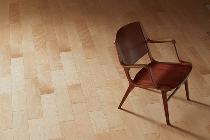 バーズアイ(鳥眼杢)や縮み杢などの杢が現れる美しい木目を特徴とするハードメイプルの乾燥した無垢材が持つ柔らかな色合い・風合いを表現しました。