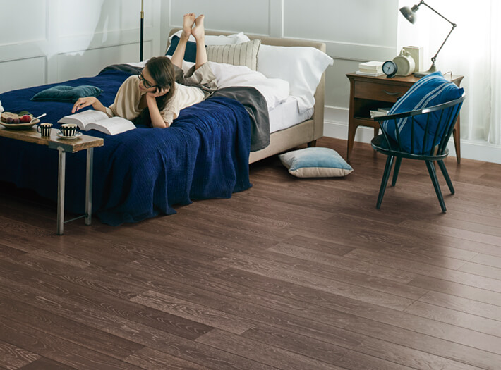 フローリングの表面に特別な顔料を塗布(着色)、乾かした上で表面を削り取り(かき取り)、道管に残った顔料で色味を重ねていきます。