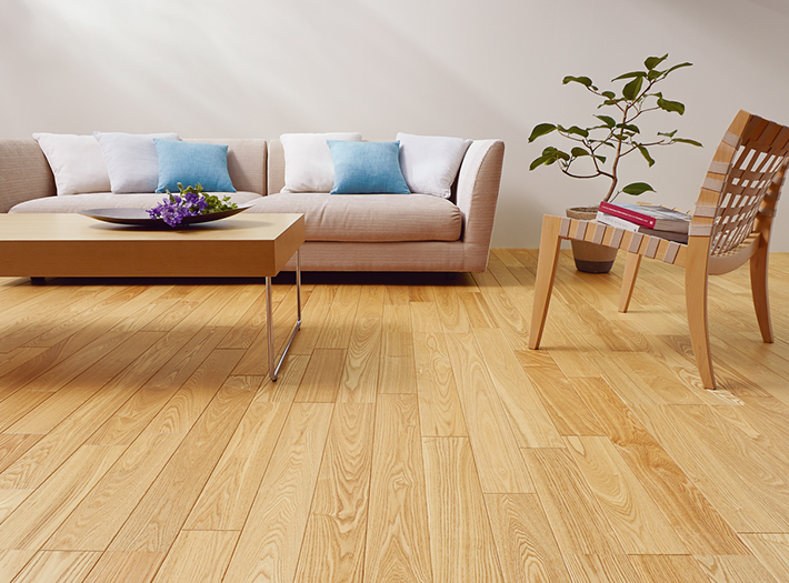 「BRUSH」は、丁寧にブラッシングを重ねる特別な加工を施すことでその美しい木目をソリッドに浮き上がらせ、見た目にも、足裏が感じる触感においても、鮮やかに豊かに“木味”を味わって頂くことができるデザインフロアです。
