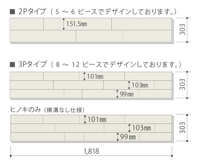 | 12×303×1,818 | 6枚(1坪=3.3㎡)入 |