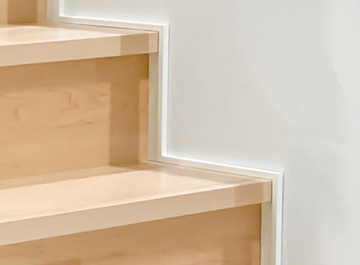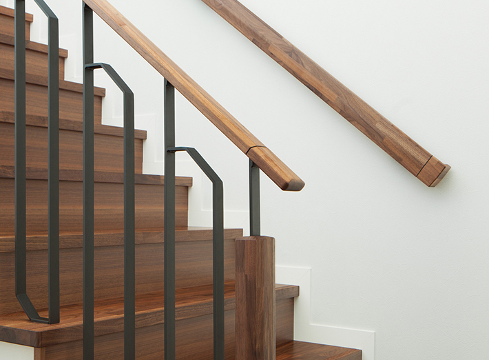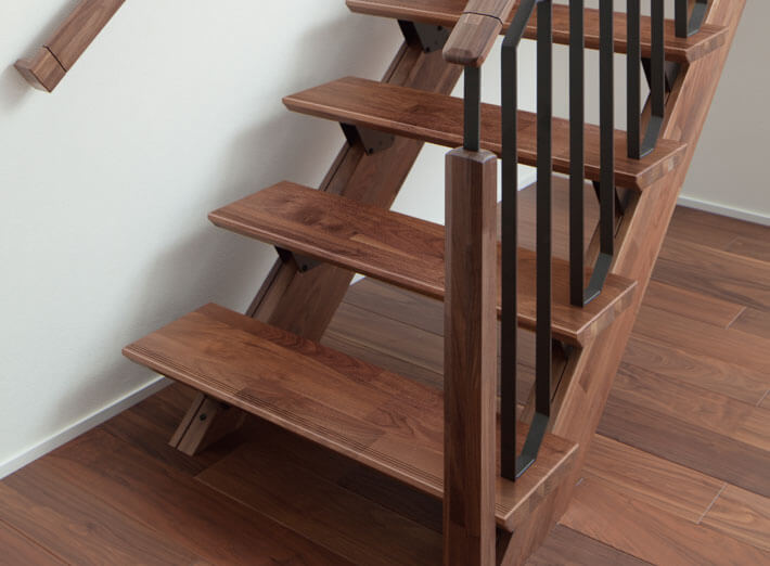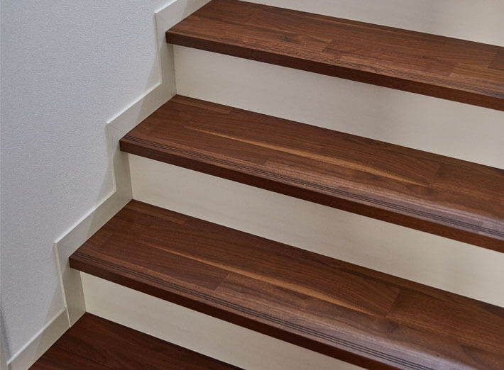美しい天然銘木の突き板で仕上げた階段部材