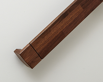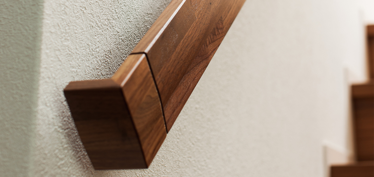 銘木無垢階段とのマッチングを考慮し、ボリューム感を出しつつシャープさのあるシンプルなデザインとしました。