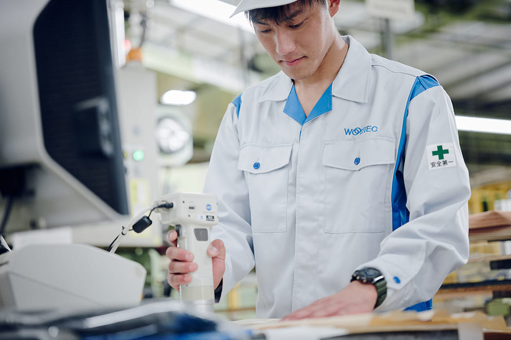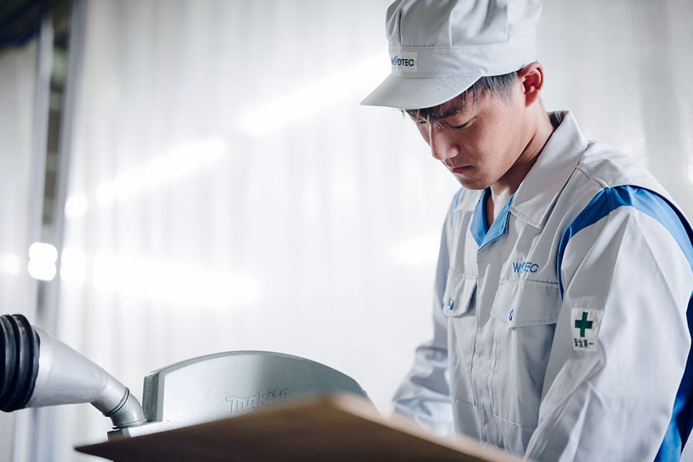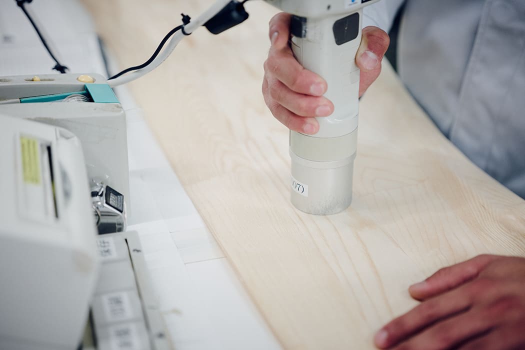 昨年は、不良の救済・補修方法の確立というテーマを商品部とともに検討し、今まで不良となっていた挽板を補修して、良品挽板にする技術を確立することができました。 その際には、商品部と連携して今の不良の実態調査や補修に使用する材料の選定、さらには過去の補修結果の整理を何度も行いながら検討を行いました。失敗を何度もしながら補修方法を確立できたので、一生記憶に残る業務です。